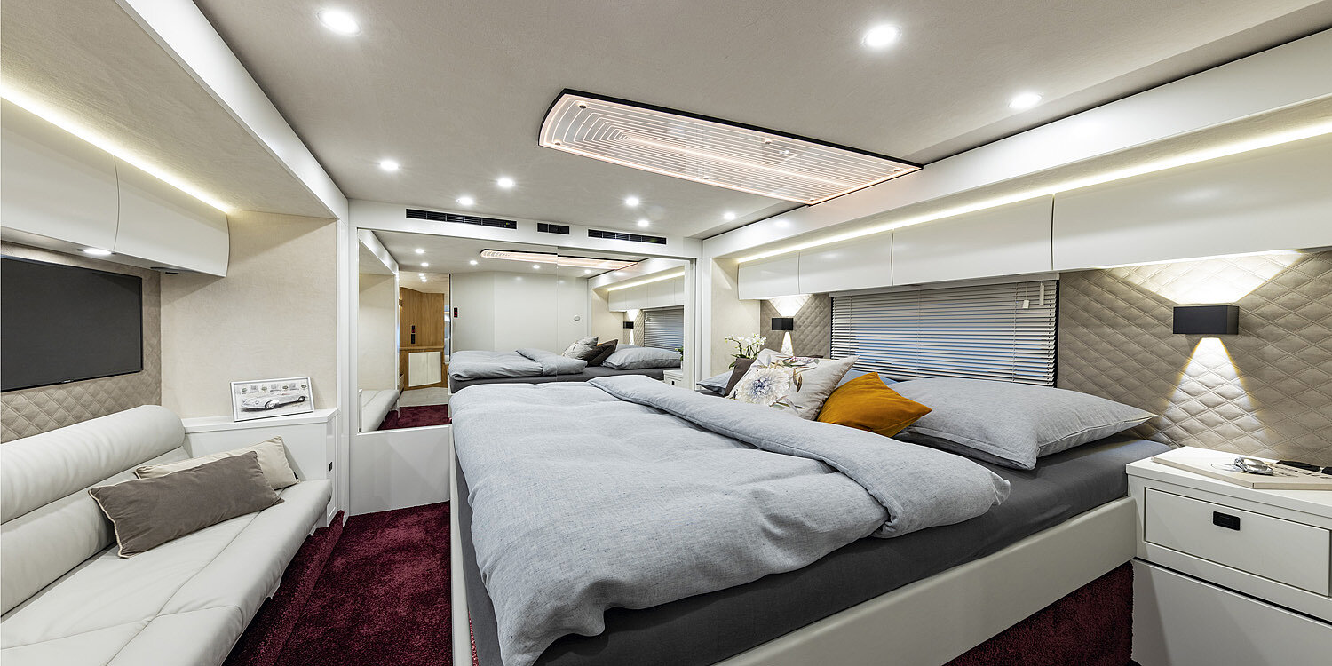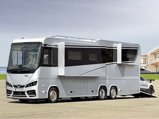 Lahr, Juni 2024. Wer bei Wohnmobilen bisher an einen gemütlichen Camper gedacht hat, der wird ab sofort eine ganz andere Assoziation im Kopf haben. Denn wir sprechen hier von absoluten Luxus-Reisemobilen, die eine eigene Garage für den Zweitwagen, bis zu vier ausfahrbare Wohnraumerker auf 12 Metern Länge und beeindruckende 530 PS bieten – übrigens genau so viel wie der aktuell leistungsstärkste Porsche 911. Diese Landyachten sind nichts weniger als Villen auf Rädern, die in ca. 12.000 Arbeitsstunden in individueller Handarbeit maßgefertigt werden. Eine der weltweit führenden Manufakturen für diese Traummobile, die VARIOmobil Fahrzeugbau GmbH, hat ihren Produktionsstandort ganz gediegen in der niedersächsischen 13.000 Seelen-Gemeinde Bohmte in der Nähe von Osnabrück. Von dieser ländlichen Idylle aus starten die noblen Landyachten zu den weltweit schönsten und eindrucksvollsten Destinationen. Doch was hat nun VARIOmobil mit Zehnder zu tun, dem renommierten Spezialisten für Design-Heizkörper? Diese Frage wird sich klären, wenn man einen Blick auf das Anforderungsprofil der Innenausstattung dieser Fahrzeuge legt.