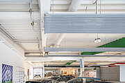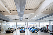 Auf Basis dieser Vorgaben kristallisierten sich Deckenstrahlplatten von Raumklimaspezialist Zehnder schnell als passende Antwort auf die Heizungsanforderungen heraus. Diese arbeiten nach dem Prinzip der Strahlungswärme: Sie werden von warmem Wasser durchströmt und geben ihre Energie in Form von Infrarotstrahlung an die Umgebung ab. Erst wenn diese Strahlung auf den menschlichen Körper oder auf Objekte im Raum trifft, wird sie als angenehme Wärme wahrgenommen. Ein großer Vorteil ist, dass für dieses behagliche Wärmegefühl nicht die gesamte Raumluft erwärmt werden muss. Dadurch kann die Raumlufttemperatur um bis zu drei Kelvin niedriger gehalten werden als bei herkömmlichen Heizsystemen, was zu einem deutlich geringeren Energieverbrauch führt. Dank der besonders kurzen Reaktionszeit der Zehnder Deckenstrahlplatten steht die gewünschte Wärme sofort zur Verfügung. Zudem sind sie völlig wartungsfrei. „Die optionale Kühlfunktion unserer Deckenstrahlplatten ist in der Pockinger Verkaufshalle zunächst nicht vorgesehen. Bei Bedarf ist eine schnelle Nachrüstung aber jederzeit möglich“, ergänzt Bernd Sämann.