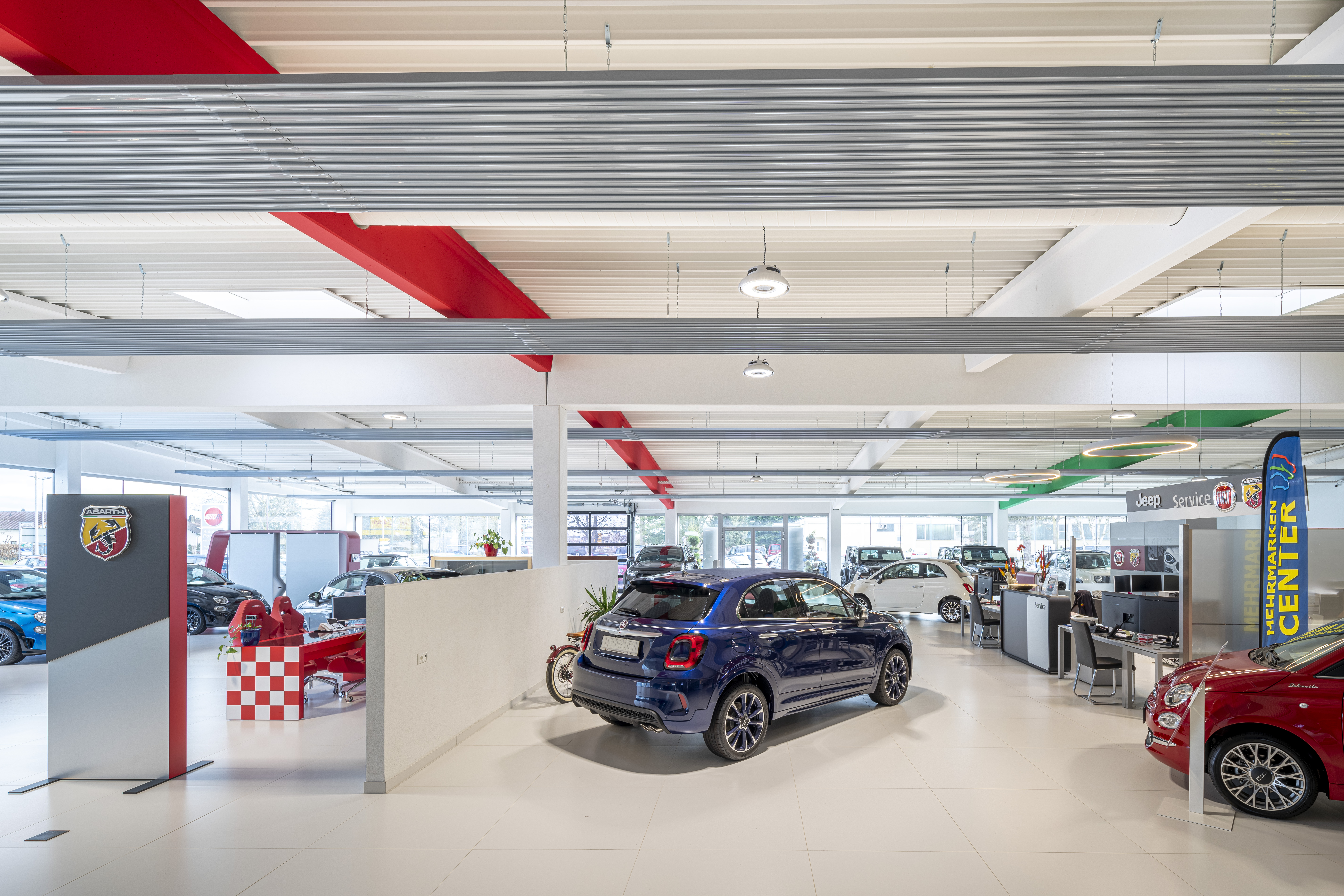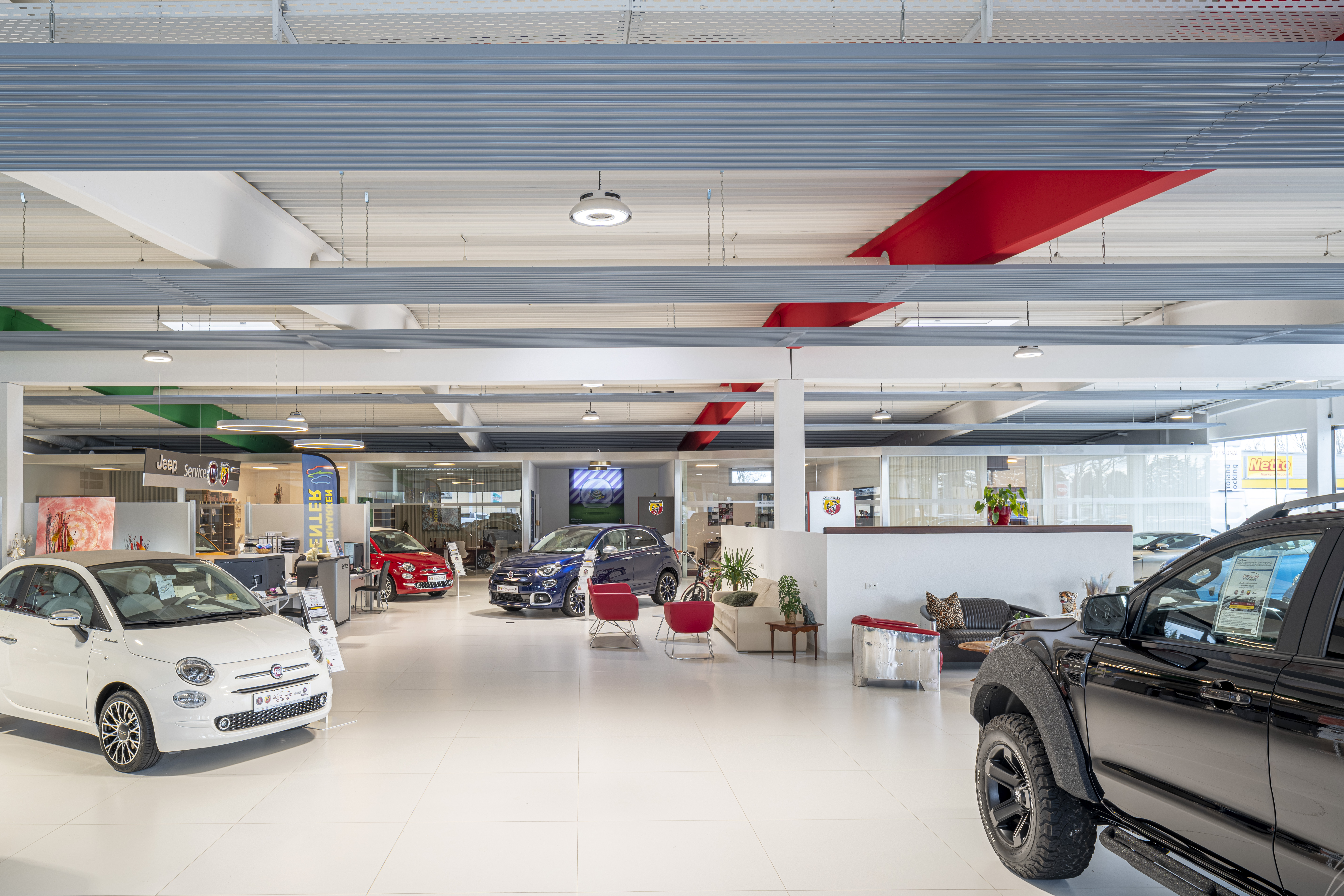 Der Name „Autoland“ hält, was er verspricht: Große, bodentiefe Fensterfronten tauchen die Verkaufshalle in ein helles Licht und lassen die Karosserien edler Markenmodelle verheißungsvoll glänzen. Als Vertragshändler und Servicepartner für die Marken Abarth, Fiat Professional und Jeep hat das Autoland insgesamt rund 2.500 Fahrzeuge im ständigen Lagerbestand, wobei aus Platzgründen nicht alle Wagen am gleichen Standort stehen. Die angebaute freie Meisterwerkstatt AUTOFIT bietet darüber hinaus weitere Services wie Unfallinstandsetzung und professionelle Lackierung an.