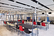Im Center of Climate wird „Raum“ erfolgreich als eine strategische Ressource begriffen. Jede Abteilung besitzt eine eigene Homebase, jedoch kann man sich überall flexibel einbuchen, um die kollegiale Umgebung passend zum jeweiligen Projekt auszuwählen. Für maximalen Komfort sind die Arbeitsplätze mittels höhenverstellbarer Schreibtische und ergonomischer Stühle gesundheitsfördernd gestaltet. Jeder Arbeitsplatz ist mit zwei Monitoren und einer Headset Dockingstation ausgestattet. Die Meetingräume zusätzlich noch mit Videokonferenzsystemen und interaktiven Displays.