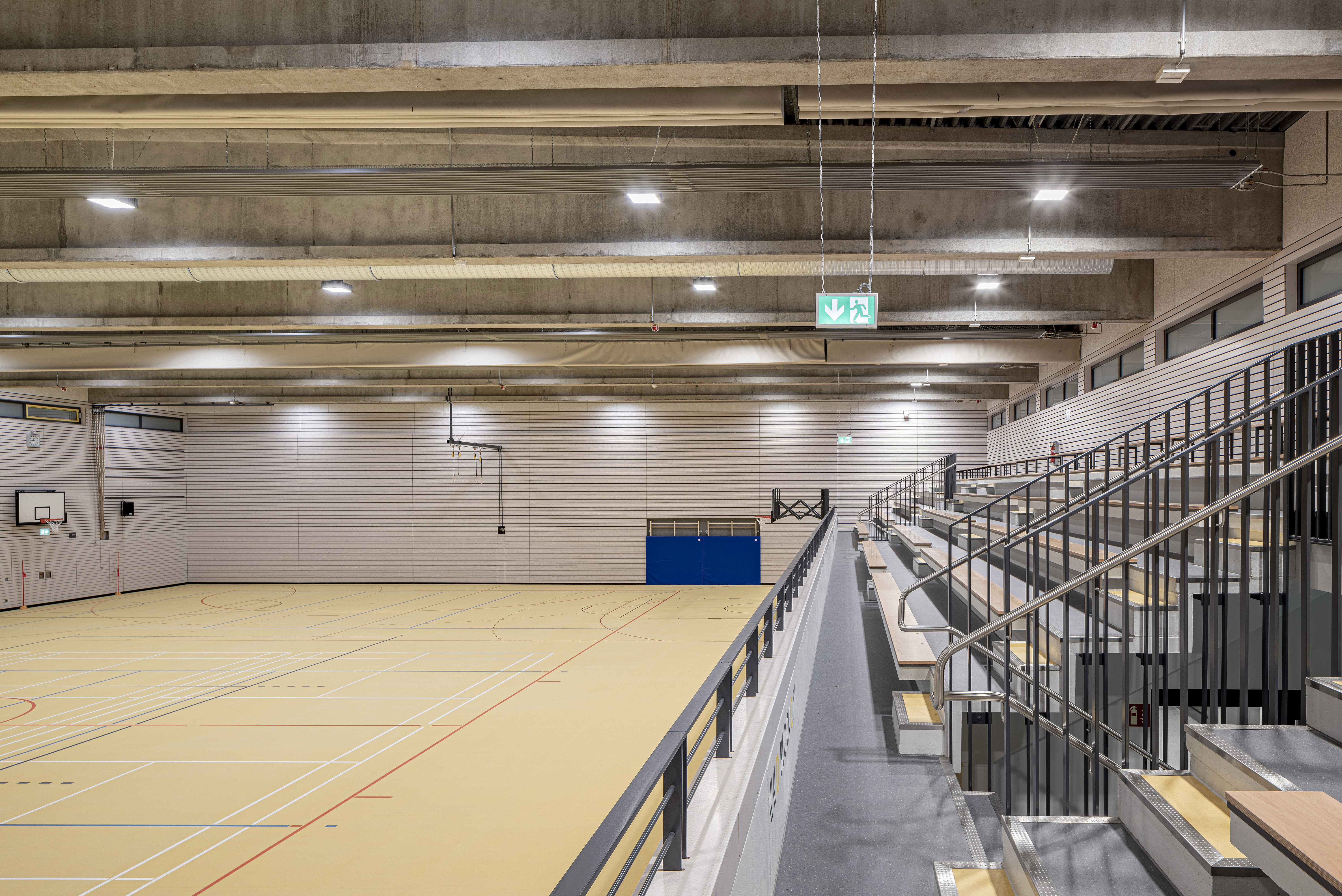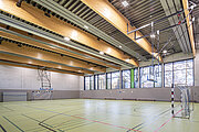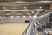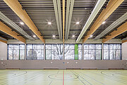 Was passiert, wenn man eine alte Sporthalle zusammen mit begeisterten Sportlerinnen und Sportlern aus drei Schulen und drei Sportvereinen in einen Topf wirft? Richtig: Eine Konstellation, die nicht lange gut gehen kann. Genauso trug es sich im baden-württembergischen Steinheim an der Murr zu, dessen Riedhalle aus dem Jahr 1972 nach knapp 50 Jahren intensiver Benutzung nicht nur marode geworden war, sondern noch dazu aus allen Nähten platzte. Die Belegung vor Ort ist nämlich mehr als dicht. So zählen zum sportlichen Einzugsgebiet nicht nur der Campus mit der Blankensteinschule, der Riedbachschule sowie der Erich-Kästner-Realschule und ihren insgesamt rund 1.100 Schülerinnen und Schülern, sondern auch drei ortsansässige Sportvereine mit zahlreichen Mannschaften in unterschiedlichsten Sportarten wie Fußball, Handball, Volleyball, Leichtathletik und vielem mehr. Um die zahllosen Sportbegeisterten aus Steinheim und Umgebung gebührend zu versorgen, entschied sich die zwischen Stuttgart und Heilbronn gelegene Stadt für eine zweiteilige Lösung. Wichtig war dabei einerseits, eine moderne und langlebige Sportstätte zu schaffen, aber andererseits auch möglichst nachhaltig und ressourcenbewusst zu handeln, wie sich der zuständige Planer Frank Müller von der Ratioplan GmbH erinnert: „Natürlich wurde darüber nachgedacht, die alte Sporthalle komplett abzureißen und dafür eine größere, moderne Halle an Ort und Stelle zu errichten. Ich selbst bin aus Gründen der Nachhaltigkeit allerdings stets für eine Sanierung, sofern dies möglich ist.“