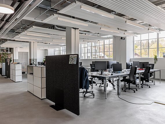 In der stilvoll sanierten ehemaligen Kartonfabrik in Deisswil ist ein in der Schweiz einzigartiges Areal entstanden, das Wohnen, Arbeiten und Freizeit vereint. Die modernen Büroräume im ZID bieten optimale Bedingungen für Start-ups und Gründer, unterstützt durch ein behagliches Raumklima, das Konzentration und Kreativität fördert.