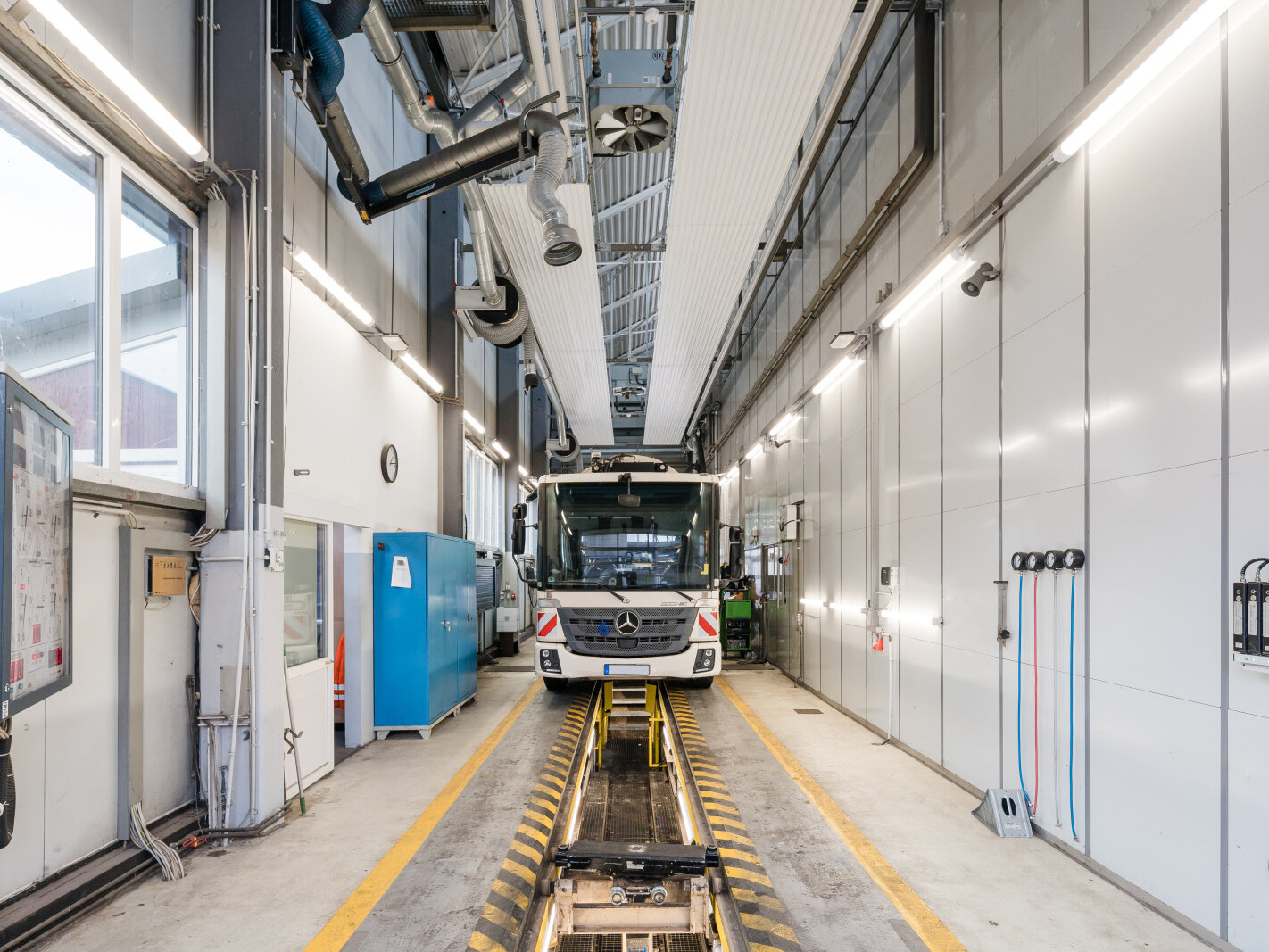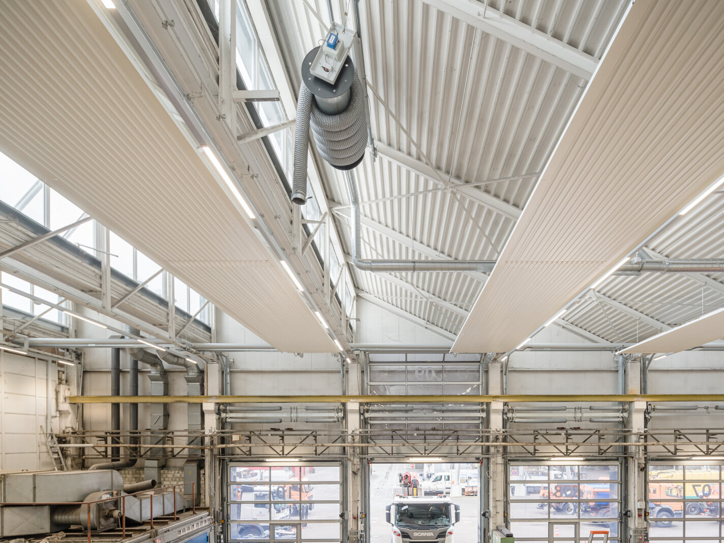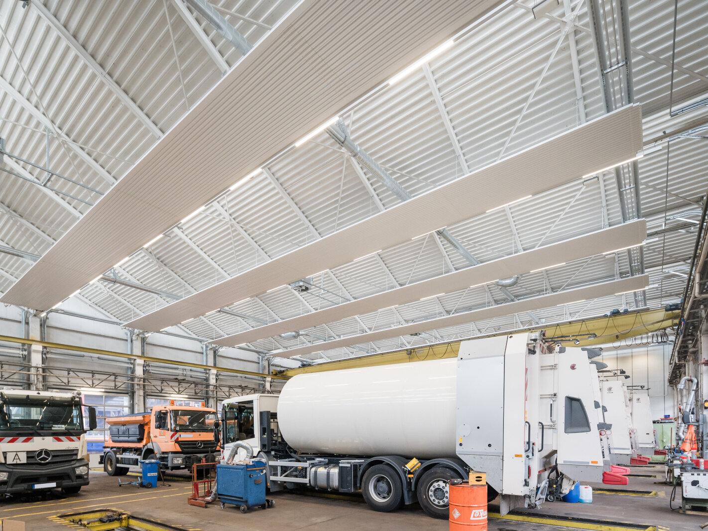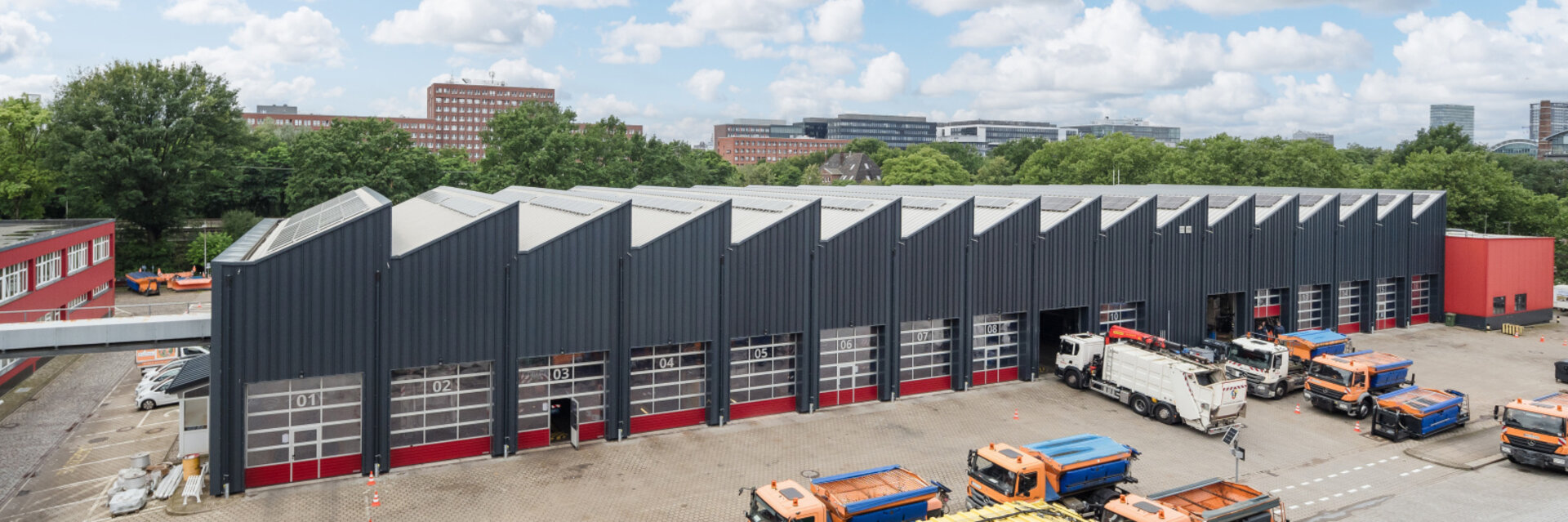 Die Kfz-Werkstatt der Stadtreinigung Hamburg wurde 2021–2023 umfassend energetisch saniert – mit Fokus auf eine nachhaltige, energieeffiziente Hallenbeheizung.