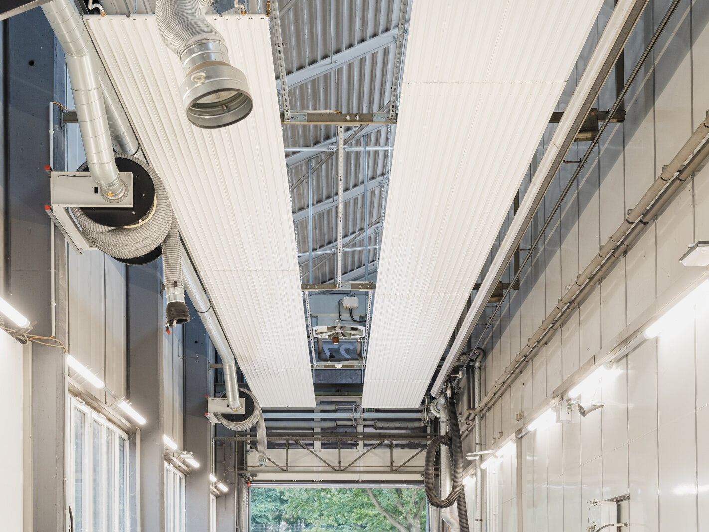 Besonders entscheidend war der Austausch veralteter, lauter Lufterhitzer durch moderne Deckenstrahlplatten Zehnder ZFP. Dank der integrierten Strahlungsschirme wird die Strahlungswärme noch gezielter und effizienter abgegeben – wie gewohnt ganz ohne Staubaufwirbelung oder Luftzug. Die Mitarbeitenden profitieren so von einem angenehmen, gesunden und leisen Arbeitsklima.