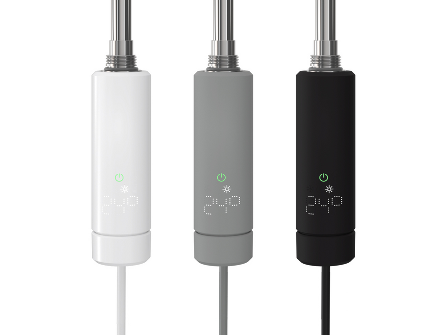 Die Steuereinheit ist je nach Farbe des Heizkörpers weiß oder chrom.