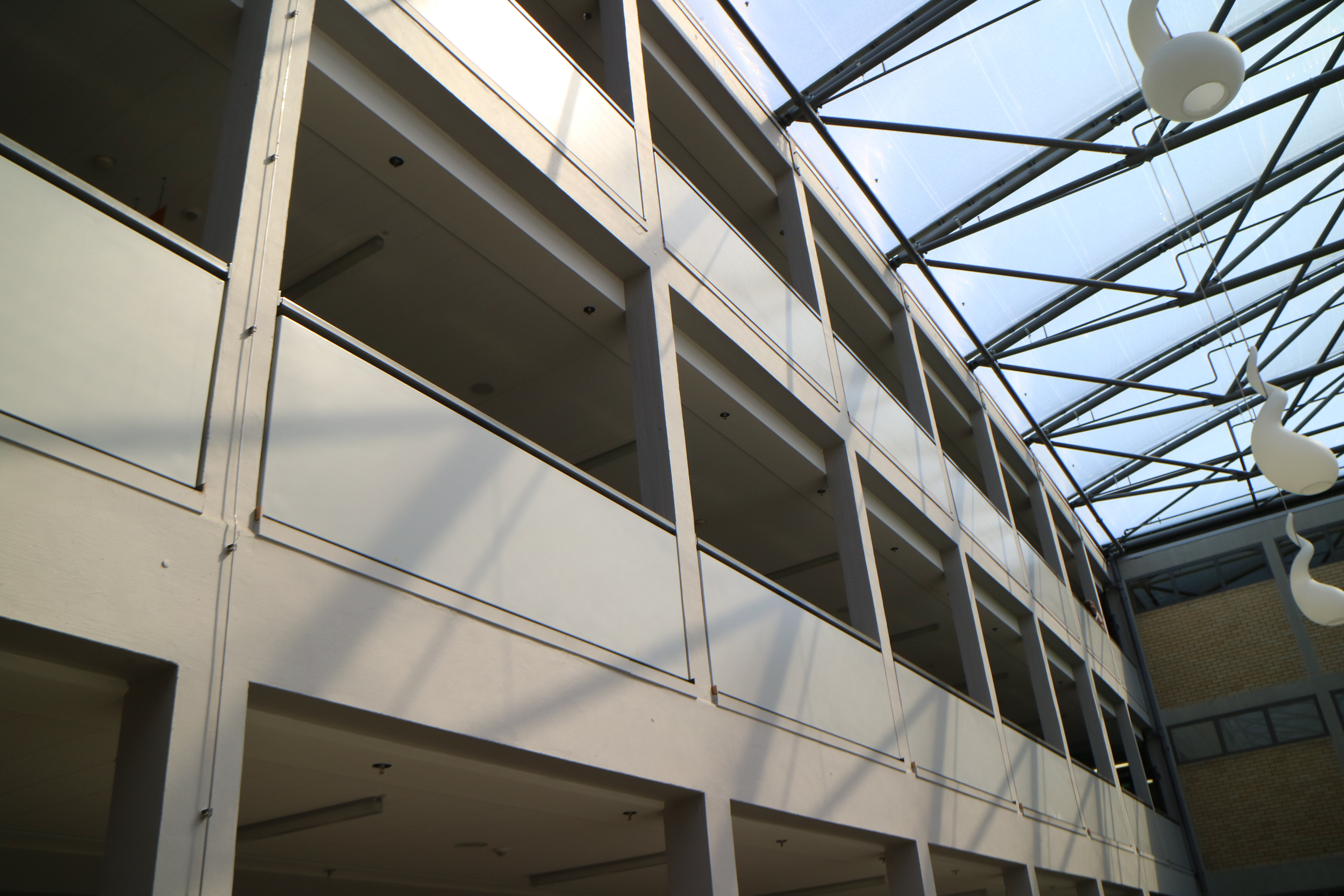 48 Heizkörper Zehnder Plano heizen die Innenhof-Mensa des Gymnasiums. Dabei beweisen sie ihre Vielseitigkeit anhand einer maßgeschneiderten Sonderlösung: Praktisch und dezent als Etagenbrüstung verbaut, beeindrucken die Heizkörper nicht nur optisch, sondern sparen auch Platz an Wänden wie Kuben und wärmen den gesamten Raum effizient.