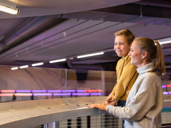 Die einzelnen Elemente der Zehnder Deckenstrahlplatten fügen sich perfekt in das optische Gesamtkonzept der Halle ein und verleihen der Rennbahn einen urbanen Style.