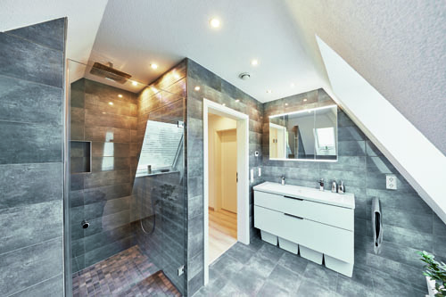 Angenehmes Wohlfühlklima: Durch die passivhauszertifizierten Komfort-Lüftungsgeräte Zehnder ComfoAir 180 und Climos 200 werden die Wärmeverluste im Vergleich zur konventionellen Fensterlüftung auf ein Minimum reduziert. Dank der nicht mehr notwendigen Fensterlüftung profitiert man so vor allem im Winter von einem allzeit angenehm warmen Badezimmer.