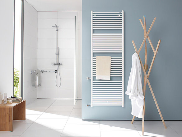 Spezielle barrierefreie Heizkörper bieten dank seitlichem Anschluss mit Thermostat-Position in bequemer Griffhöhe auch körperlich eingeschränkten Menschen eine komfortable Temperaturregelung.