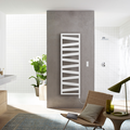 Wie ein Band aus Stahl, das den Bad-Heizkörper umhüllt: Zehnder Ribbon überzeugt durch modernes Design mit Sinn für das Praktische. Seine versetzten Streben sind inspiriert durch architektonische Bauwerke mit mehreren Ebenen. Großzügige Aussparungen bieten der ganzen Familie viel Platz zum Aufhängen von mehreren Handtüchern. Diese Verknüpfung von Form und Funktion machen Zehnder Ribbon zu einem Heizkörper, der Komfort und Klasse ins Bad bringt.